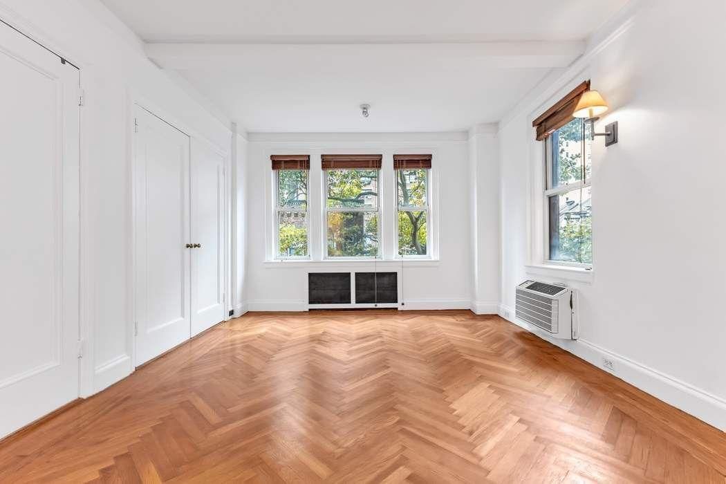 The sun shines through the south facing, picture windows, and through the tree-lined backyard, brightening this cheerful, classic, very quiet, prewar studio all day long. Setting this home apart from others are the high ceilings, elegant entry foyer, ample closets and storage space, and gorgeous herringbone floors, all with a floor plan that is thoughtfully laid out, including a wonderfully designed Murphy bed, if need be.