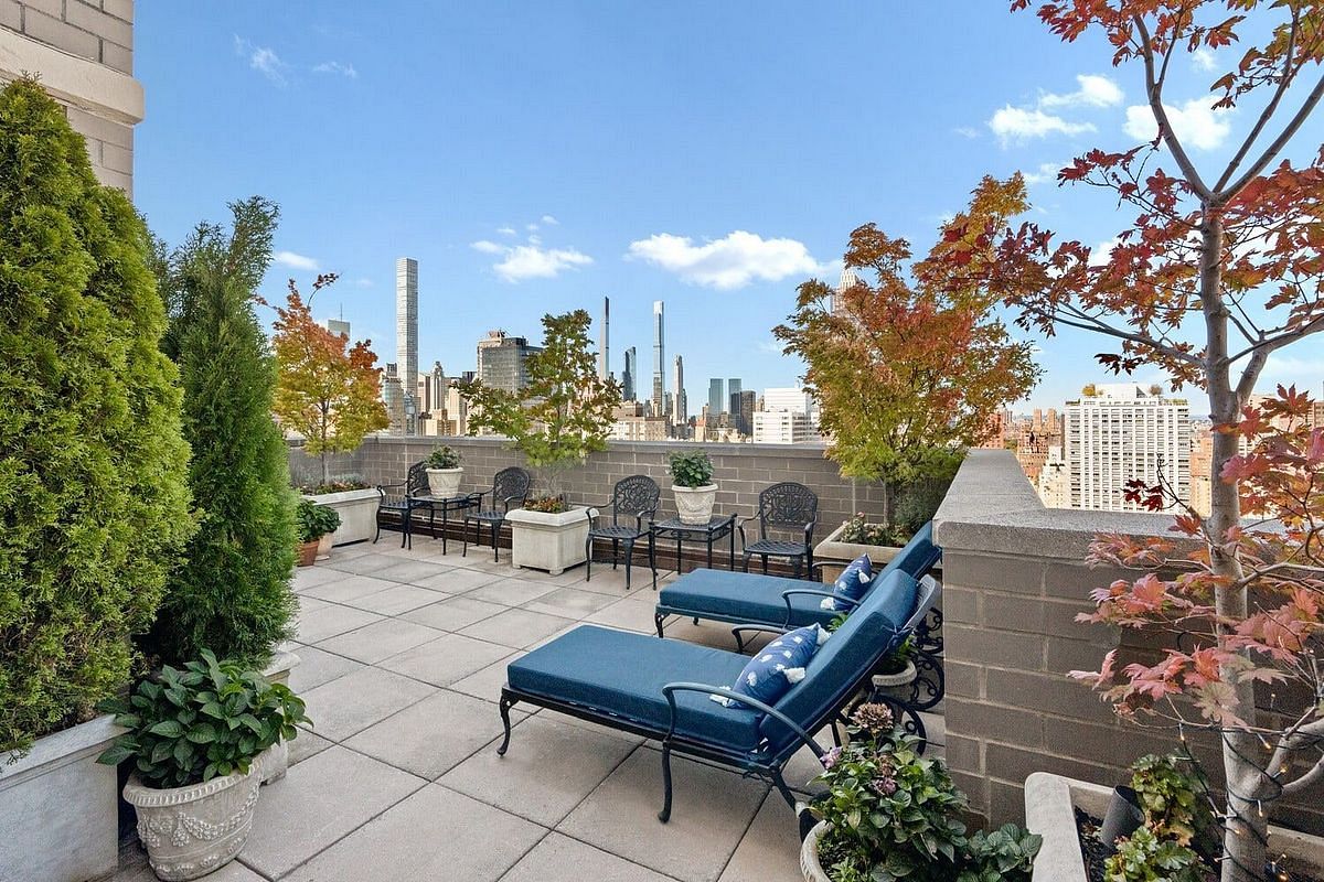 Rarely available and truly unique, this move in ready, luxuriously renovated palatial duplex condo with a huge private terrace offers grand, sun filled living spaces, nine foot ceilings, a chefs kitchen, and sweeping skyline views from the 36th and 37th floors. Classic details, crown moldings, elegant wall coverings, wainscoting, chair rails, and more custom built-in storage than a house in the suburbs bring warmth, character, and functionality to this one of a kind home. With indoor and outdoor living space downstairs and bedrooms upstairs, the layout provides townhouse living in a full service, white glove building in the heart of NYC's Upper East Side, and with only four neighbors across both floors, a rare sense of privacy and exclusivity. On the first floor, the central living and dining areas flow seamlessly into the chefs kitchen, complete with a kitchen island and ample storage. Floor to ceiling windows and sliding doors frame high floor open city views and extend naturally onto the massive, fully irrigated private terrace clad in copper siding. This exceptional outdoor area functions as a true open air living room, ideal for dining, entertaining, or relaxing in privacy. Custom built-ins and closets throughout maximize space, including a charming half bath with herringbone mosaic tile and a storage zone beneath the staircase, currently a childrens play area but adaptable to many uses. A well appointed staircase, dressed with a tailored runner and adorned with wall coverings and a chandelier, leads to the second floor, where classic details continue. The primary suite offers an en suite bath, open views, and excellent storage. The second bedroom also enjoys wide skyline vistas from the 37th floor and a sense of privacy. Wood floors, marble and mosaic tile bathrooms, abundant built-in storage, and oversized windows complete the upper level. The Kingsley is a full service condominium with a full time doorman, concierge, a bike room, storage, and live-in superintendent. Residents have access to a spacious, well equipped gym with city views and an on-site garage with direct building access. Located moments from top schools, restaurants, shopping, and key transportation including the Second Avenue Q train and nearby bus routes, this renovated, move in ready duplex with a terrace of remarkable scale offers a truly elevated Upper East Side living experience.