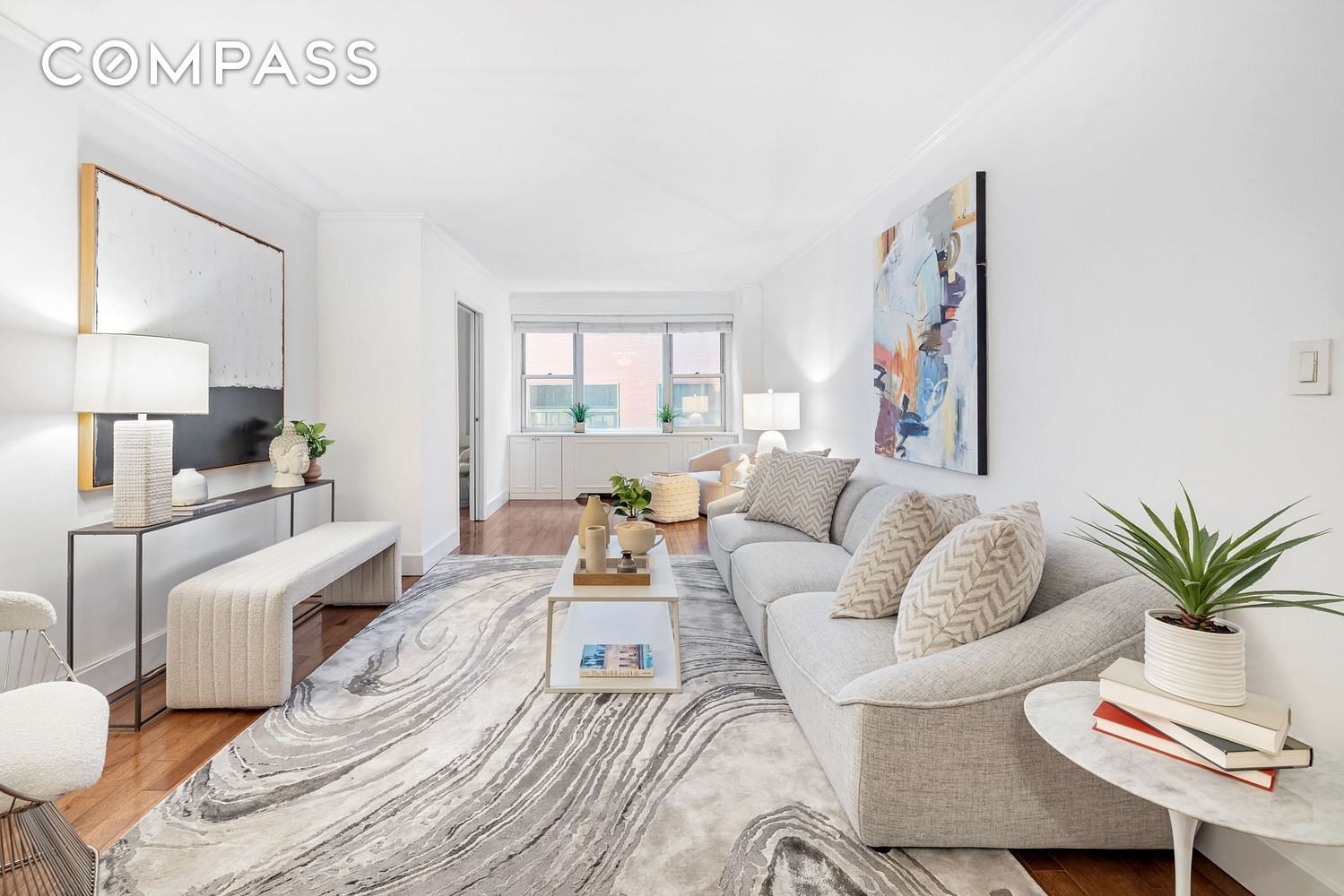 Welcome home to this move-in ready 2 bedroom corner apartment in a full-service luxury building on Manhattans Upper East Side. This meticulously well maintained south and east facing home offers new walnut hickory flooring throughout, new lightweight wooden blinds, an upated windowed bath and an updated windowed kitchen with full-size stainless appliances. The oversized primary suite has eastern and southern facing windows offering a great cross breeze. The incredibly gracious living room offers a perfect spot for dining as well as a home office and a spacious living area. The secondary bedroom is a great size and makes the perfect sleeping quarters, a den or anything else you can dream up. Rounding out the many attributes of this mint co-operative unit are an abundance of closets throughout and a fresh coat of paint! You truly can move right in.