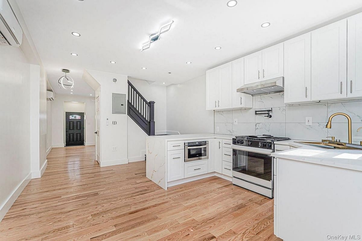 This home has been fully renovated. New electric, New roof, New plumbing. Upon entering the home, you walk into your living room which leads to the gorgeous open concept kitchen. Brand-new stainless-steel appliances, custom cabinetry, oversized island, quartz countertops have the kitchen as the focal point of this one-of-a-kind property. The first floor also has a separate entrance to the back, guest bathroom and laundry area.