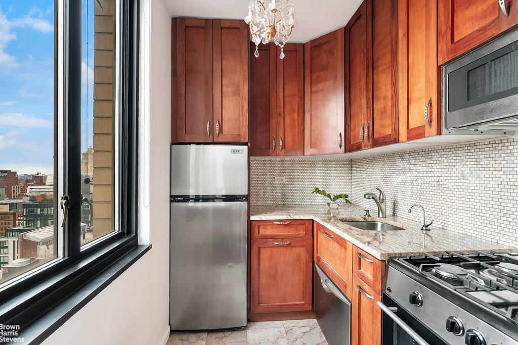 Apt 24C is a charming and pristine Park Avenue studio unit with the incredible unobstructed views. The unit features a foyer with three large closets, wide wall-to-wall East facing windows, and Brazilian oak flooring. The unit is spacious enough for any size bed with room for a sitting area or work office. The windowed kitchen features wood cabinetry with abundant space, marble countertops, a pearlescent backsplash, and stainless steel refrigerator, gas oven/stove, and mounted microwave. The bathroom features marble tile flooring and walls. This warm and bright space is sure to make anyone happy, come see for yourself. It's great for a first-time home buyer or pied-a-terre.