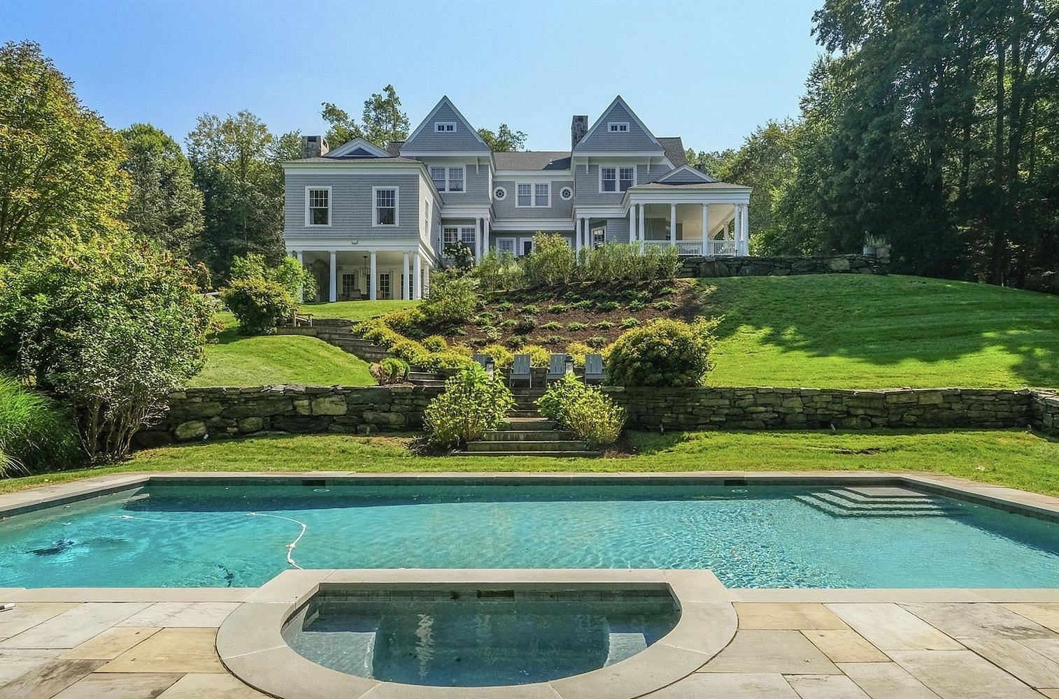 Experience sophisticated Waccabuc living in this stunning 7,313 SF shingle-style masterpiece, nestled on a quiet cul-de-sac, in the coveted Rock Shelter neighborhood, within the award-winning Katonah-Lewisboro School District. Elegant millwork, soaring ceilings, and five fireplaces create a warm, inviting ambiance throughout. Designed for both lavish entertaining and intimate gatherings, this home offers multiple indoor and outdoor living spaces, including a chef’s kitchen with heated floors, butler’s pantry, spacious mudroom, and seamless flow to the stylish family and dining rooms. The beautifully appointed living room and office, both featuring fireplaces and French doors, lead to a covered porch. The first-floor private suite includes a full bath, with two additional half baths off the mudroom and foyer. Upstairs, four en-suite bedrooms include a luxurious primary suite with two walk-in closets, along with convenient second-floor laundry and a walk-up attic for additional storage. The expansive basement offers a full bath, storage, and French doors opening to a dining patio and pool. Outside, enjoy two inviting dining areas, a tiered backyard framed by mature trees and lush landscaping, and a stunning pool with spa and pool alarm—all set on over 5 tranquil acres, perfect for relaxation or unforgettable gatherings. Complete with a full-house generator, convenient access to schools, major highways, and an effortless NYC commute via Katonah or Golden’s Bridge, this exceptional property truly has it all. Create lasting memories with family and friends in this remarkable home!