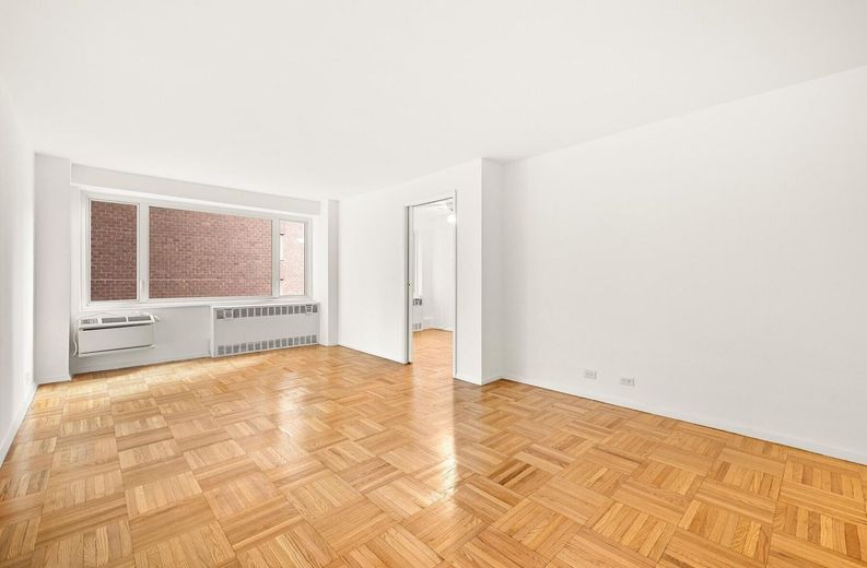 Welcome this nearly 1000 sq ft condo in the heart of Sutton Place that is priced to sell! Currently configured as a two-bedroom, apartment 14A has a very flexible layout and also can be configured as an oversized one-bedroom with open kitchen. The sprawling living area has plenty of room for a dining area and is pin-drop quiet. The primary bedroom is generously proportioned with room for a king sized bed, plus furniture and has a massive walk in closet. A second small bedroom is perfectly suited for a home office or guest room. The galley kitchen is ready for your design ideas and could easily be opened to the living area! This bright, open unit also features 2 other large closets, a full bath, through the wall air conditioners and recently refinished hard wood floors!