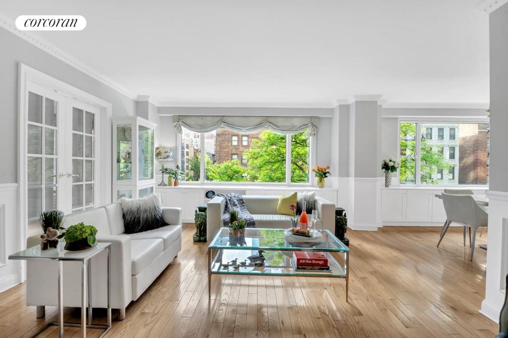 The ensuite primary bedroom is complete with southern facing windows, a walk-in closet and newly renovated marble bathroom with glass enclosed shower. The room easily houses a king-sized bed leaving space for your comfortable cozy chair. The second bedroom also with southern light and a large closet is adjacent to the second renovated windowed bathroom with bathtub. The third bedroom has the most enchanting corner light and views and French doors that provide access to the living room.