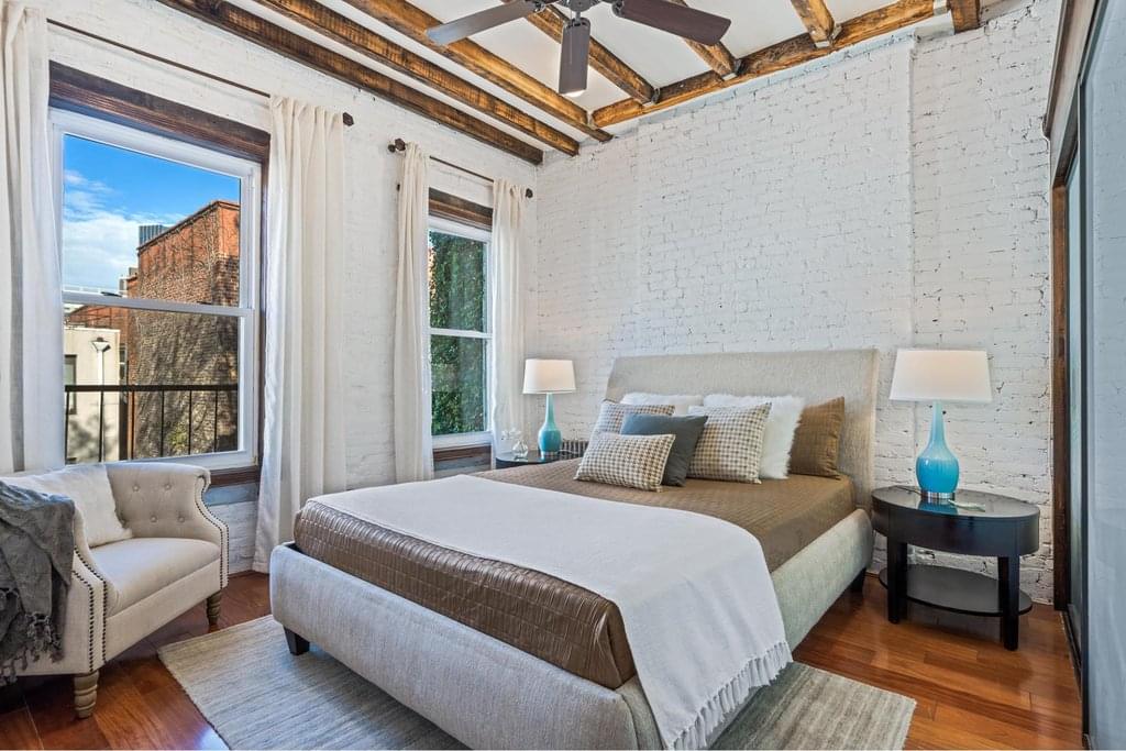 JUST REDUCED! Prewar penthouse two bedroom plus home office and access to the ultimate Hell's Kitchen roof deck. Massive apartment only two on the floor. Low maintenance. Great for work at home. Move-in condition. W/D in unit. Additional features include open kitchen, high-beamed ceilings, exposed brick, decorative fireplace and oversized windows. Storage and bike space available. Verizon FIOS. Well-maintained, self-managed 13-unit, debt-free coop walk up. Prime location near Midtown, Theater District and all subways. Sublet 2 of 5 years. Primary residence or pied-a-terre. Cats ok but sorry, no dogs. See you on the roof deck!