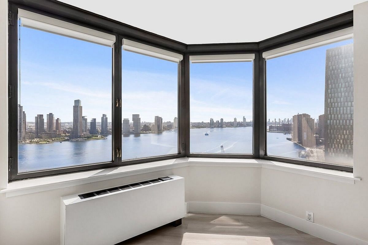 "Resort-style luxury living high above the city: South-facing 1 Bed + Den with 2 full baths, East River views, newly renovated kitchen, in-unit W/D, and Horizon's world-class rooftop pool, spa, and fitness amenities."