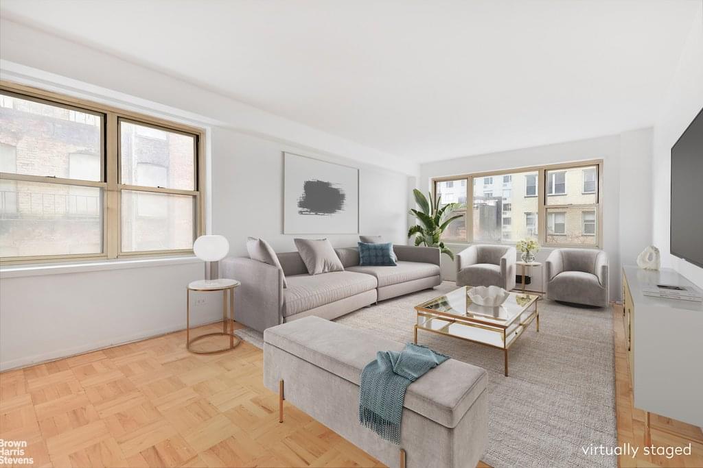 The attractive residence features oversized rooms including a rear facing bedroom with two exposures, separate dining room easily modified to create a home office or guest room, a distinct entryway, abundant closets, plus a full bath and windowed kitchen. The residence is bright and quiet and the possibilities for updating and remodeling are on full display. The home is located on the quiet end of a cul-de sac street off First Ave. half a block from the East River in the prestigious Sutton House co-op. A monthly assessment of $177.34 is in place until June 2025.