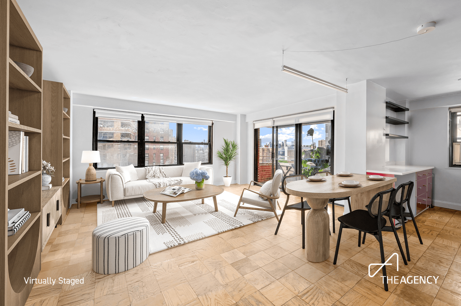 The residence is located in one of four buildings that make up the well-established Seward Park Cooperative, known for its community-first spirit, robust amenities, and exceptional access to Lower Manhattan. The building features 24/7 attended lobbies, keyed electronic entry, on-site maintenance, a modern laundry room, bike storage, composting, and a community garden. For those who work remotely or entertain often, a thoughtfully designed shared workspace and a community room, complete with a full kitchen are available for meetings and gatherings.