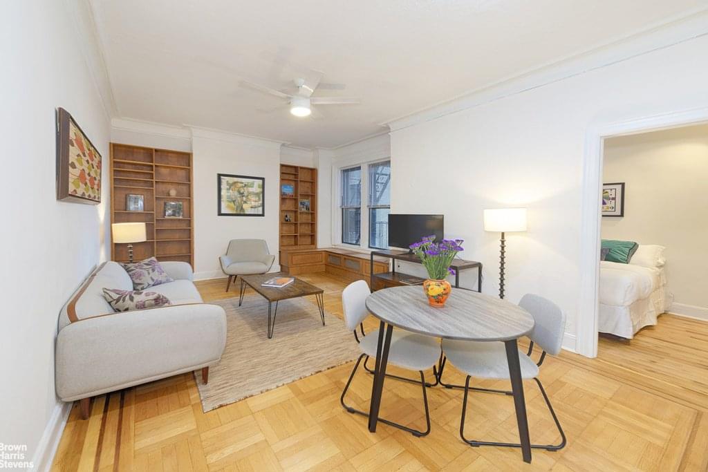 This classic Pre-War Condominium on Central Park West has high ceilings and beautiful hardwood floors throughout. The spacious Living Area can accommodate a table for eating. It has built-in bookcases and seating area in front of the living room windows, which face east, providing great morning light. The kitchen has just been renovated and has new appliances, including a microwave. The windowed bathroom has its original tile floor, and its original large bathtub. The dressing area has twin closets.