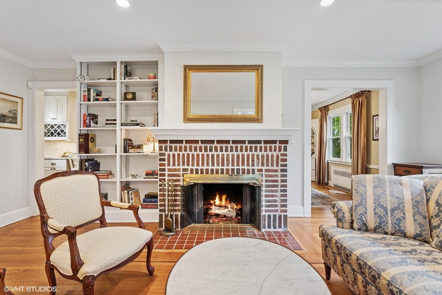Move-in ready Tudor home in Larchmont on a tree-lined street in the Murray Avenue School district. This sun-splashed gem is fully renovated and has never taken on water. Tiled foyer opens to living room with wood-burning fireplace, bookcase, stained-glass window and hardwood floors, a warm and cozy place to be in wintry weather. Sunny family room accommodates a large couch, upright piano, media. Indulge yourself in the chef's kitchen with custom cabinets, granite counters, peninsula, pantry and ample storage. Two Bosch ovens, warming drawer, microwave, Viking cooktop and Tuscan-inspired brick backsplash create a striking space with a lot of firepower. Kitchen table/chairs/fixture/TV included. Built-in desk space and tiled powder room complete the tableau. Sliding glass doors open to rear patio with new fence and striking pergolas, the place to be for seasonal entertaining or cocktails at sunset. Landing off kitchen is the go-to spot for morning coffee or peaceful place for you and your laptop. Dinner parties are a pleasure in the formal dining room accented with crown/dentil molding, ceiling medallion and intricate chandelier. Corner cabinets provide an indispensable spot for crystal and fine dinnerware. Three bedrooms on second level, starting with spacious primary featuring deluxe ensuite bath with custom vanity and radiant-heat floors. Windowed walk-in closet has space for all your couture and more. Second bedroom features a custom sleeping loft and built-in desk with shelving. Spacious rear bedroom overlooks patio and can fit two beds and furniture. Renovated hall bath has radiant-heat floors and vanity with vessel sink. Walk-up attic has plenty of room for seasonal gear, suitcases, holiday decorations and a bonus office space. Finished basement has nook for design table, exercise area and convenient place to store big-box food purchases and roasting pans. Walking distance to town, train, schools, parks, skating rink, public pool/tennis and more. Dual-zone central air and alarm system. Key upgrades: new furnace ('16) water heater ('21) exterior paint ('21) rear fence ('22), fresh paint. If you're searching for a home with the perfect blend of style and modern conveniences in a prime location close to everything Larchmont is renowned for, look no further.
