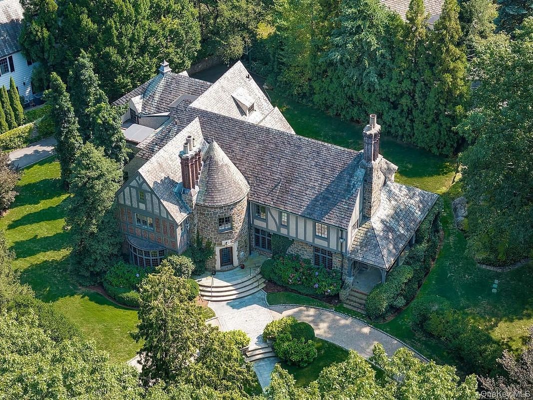 Just twenty minutes north of Manhattan yet a world apart, 42 Masterton is ideally situated in the prestigious Masterton Woods Estate section of Bronxville Village. Perfectly located within walking distance to the school, train, and village, this much-admired 1927 French Normandy Tudor was designed by acclaimed architect George H. Pohle. The home’s signature features include a striking turret, restored oak beams, elegant woodwork, soaring ceilings, and original leaded glass windows. Following a complete renovation, the residence now blends historic architectural charm with modern upgrades, offering timeless beauty and contemporary comfort. Upon entering, the rich craftsmanship, attention to detail, and striking color palette—chocolate browns, claret reds, and inky blues—set an elegant tone throughout.