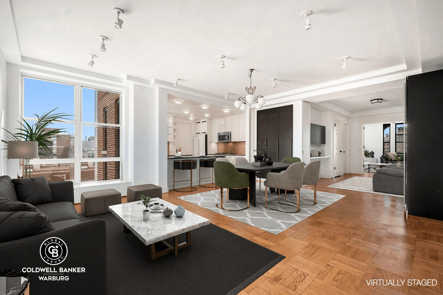 Welcome to this beautiful Prewar Penthouse at The Hamilton, an historic, full-service building in the heart of Morningside Heights. This spacious, light-filled 3-bedroom, 2-bath home faces South and East and offers an ideal blend of modern comfort and classic charm. There are beautiful hardwood floors, 9.5-foot ceilings and abundant natural light throughout the apartment. In addition, an in-unit washer and dryer offer the ultimate convenience.