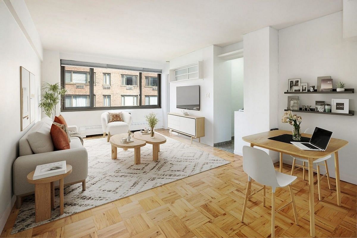 Apartment W11B at the Royal York is a spacious alcove studio of 550 square feet with Northern city views that functions seamlessly as a one-bedroom. A custom wall transforms the alcove into a true bedroom, enhanced by its own window that brings natural light. The generous Living Room easily accommodates both living and dining, while a separated dressing area with adjacent marble Bathroom provides an additional layer of functionality and privacy. The home includes a galley-style Kitchen as well as multiple closets and hardwood floors throughout.
