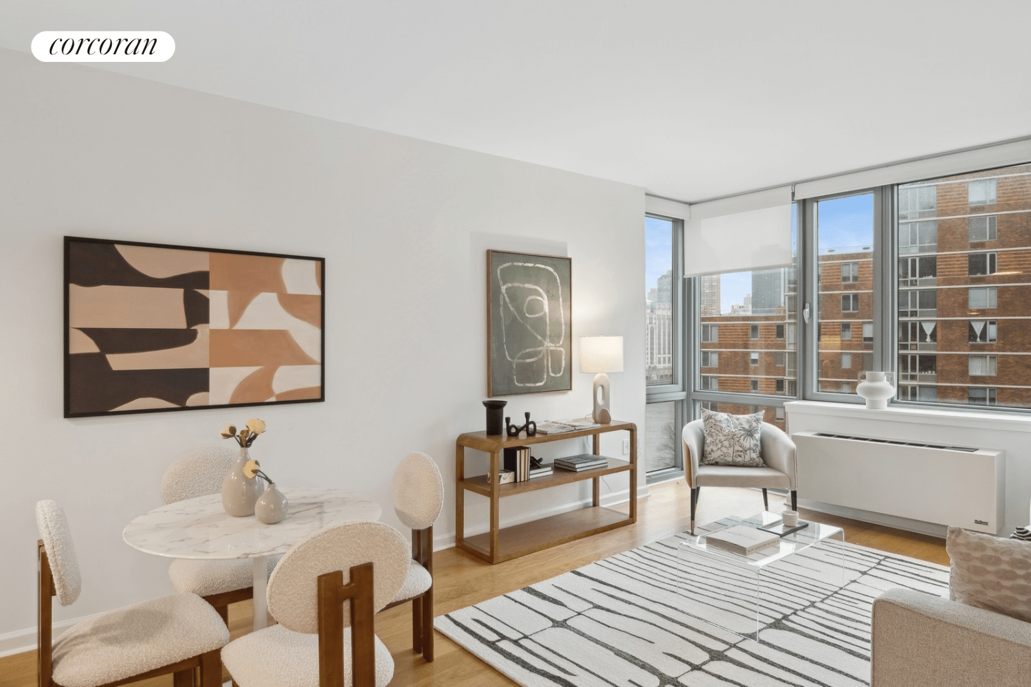 Welcome to 425 Main Street, #14A, a bright and airy one-bedroom apartment offering stunning north and northwest views of the iconic Manhattan skyline. This fantastic opportunity to purchase from the Hudson-Related sponsor ensures you are securing a refreshed and updated home in a sought-after location. Take advantage of the remaining years of tax abatement, making this home not only a beautiful place to live but also a smart investment. (There is a $255/month assessment in place for the months of 2025.)