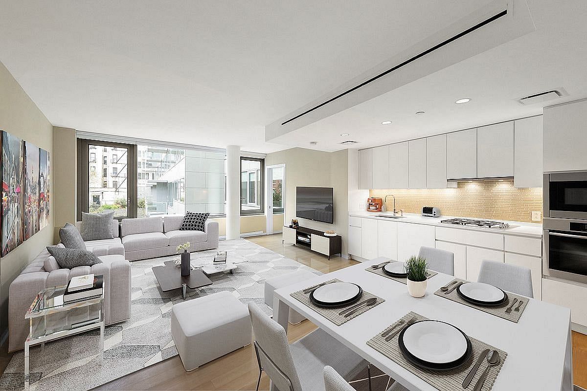 A thoughtfully designed one bedroom condo offering comfort, scale, and quiet in the heart of Hell's Kitchen.