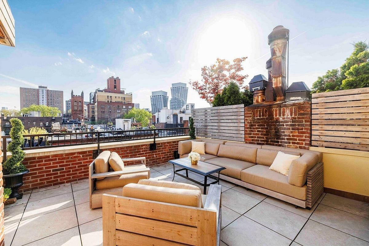 This exceptional Chelsea townhouse penthouse duplex opens to remarkable light, volume, and sweeping views over West Chelsea's historic rooftops. Light pours through oversized windows, illuminating a grand, open living and dining room with soaring 10'6 ceilings. The scale, volume, and clarity are immediately apparent-this is a home that is both expansive and composed, with two private roof terraces located on the upper floor.