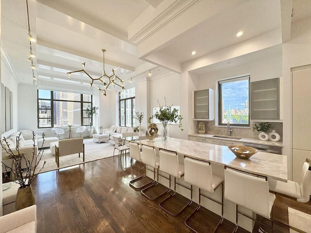 Your search ends here for the ultimate masterpiece two-bedroom penthouse condominium in the finest Westside location next to Central Park and Lincoln Center. Having the grand scale of a prewar mansion and all the conveniences of a contemporary loft, sweeping park and city views from two exposures, soaring 13-foot beamed ceilings, and massive rooms is just the beginning.