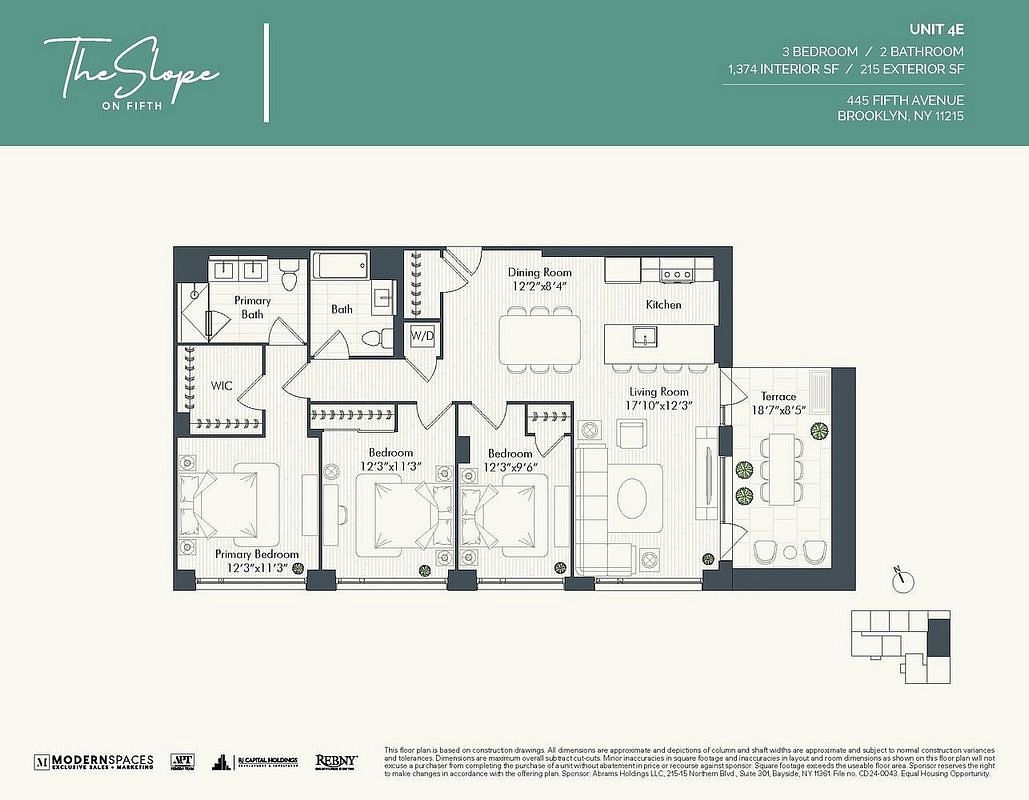 Welcome to Residence 4E at The Slope on Fifth, a stunning three-bedroom, two-bathroom condominium with a terrace facing west that offers an unparalleled living experience in the iconic Park Slope, Brooklyn. Enter this exquisite residence that blends modern elegance with contemporary Scandinavian influences. Exquisite PID engineered hardwood flooring in a European white oak finish sets the tone, while floor-to-ceiling windows flood the space with abundant natural light.