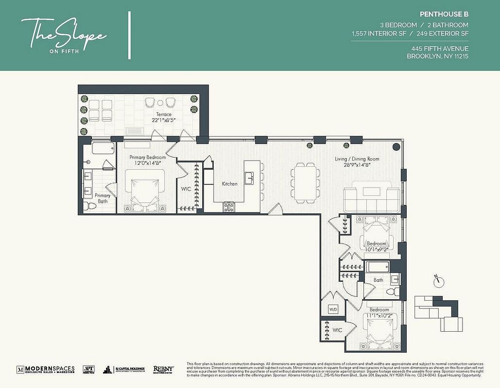 Welcome to Residence PHB at The Slope on Fifth, a stunning three-bedroom, two-bathroom condominium with outdoor space that offers an unparalleled living experience in the iconic Park Slope, Brooklyn. Enter this exquisite residence that blends modern elegance with contemporary Scandinavian influences. Exquisite PID engineered hardwood flooring in a European white oak finish sets the tone, while floor-to-ceiling windows flood the space with abundant natural light.