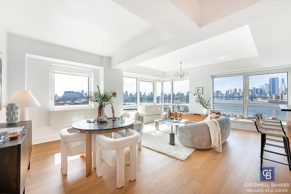 Welcome to one of the best waterfront views in Williamsburg. This elegant 1,287 square foot 10th floor south and west facing two-bedroom, two-bathroom home boasts an open floor plan, richly appointed natural wood cabinets, doors and flooring, and an abundance of natural light. Featuring unobstructed, panoramic views of lower Manhattan, downtown Brooklyn, the Statue of Liberty, and the Williamsburg, Brooklyn, Manhattan and Verrazzano bridges, this luxurious space offers an open concept kitchen w/ breakfast bar, built-in shelving, and stainless-steel appliances that are an entertainer's dream! The large primary bedroom easily accommodates a king size bed, includes a full ensuite bathroom with double sinks, granite countertops, a large soaking tub, and a Carrera marble shower stall and flooring and boasts a spacious closet. This bountiful space also has a second bedroom large enough to adequately fit a queen size bed. And there is a second full bathroom, a dedicated closet for the in-room washer dryer, and excellent closet and storage space throughout. Schaefer Landing South is a premier full service building that offers exclusive amenities including a recently-updated fitness center, a spectacular shared roof deck adorned with a grill, resident's lounge overlooking the water, children's playroom, kitchen, library/media room, a basement parking garage and a fullyequipped business center. The East River Ferry service is located directly behind the building and will take you to Wall Street or 34th Street. Early morning subway commuters can use the shuttle service to the Marcy J/M/Z stop & Bedford Avenue L train. There is a 421A 25 year tax abatement, which does not expire until 2032. In addition there is a $493 capital assessment in place