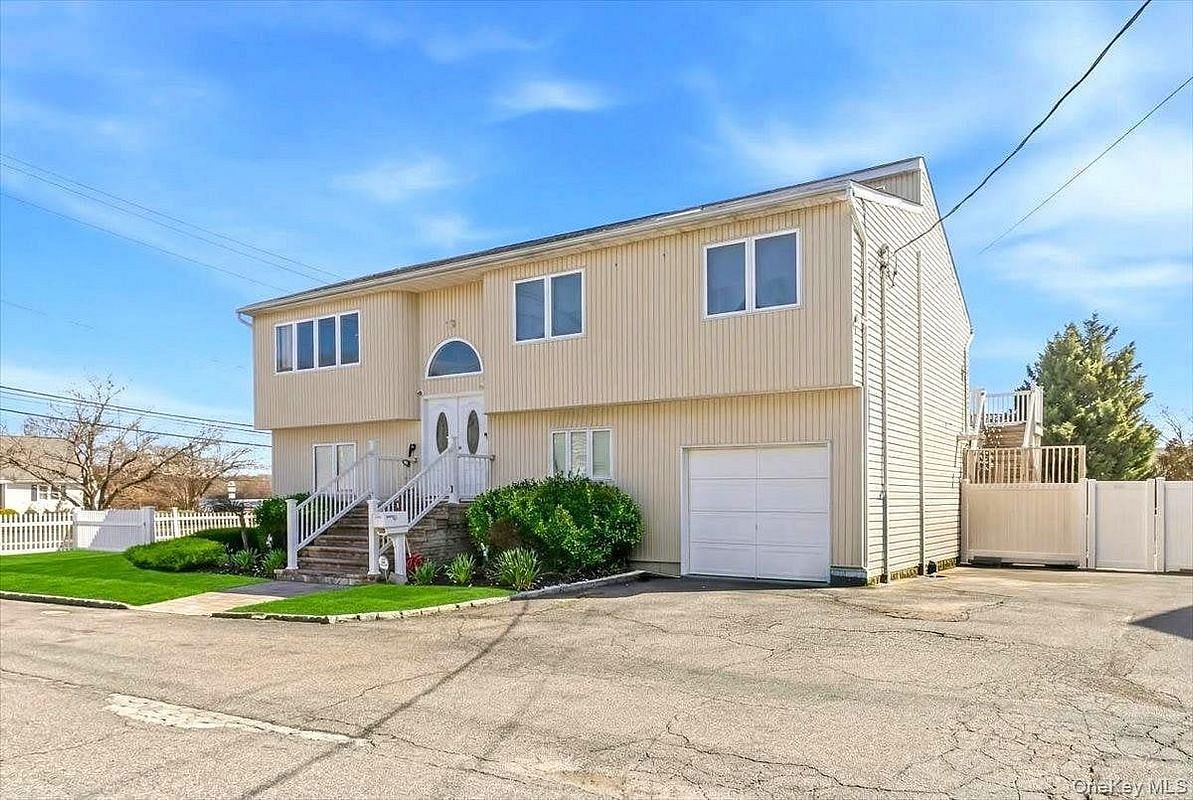 Waterfront Living Dream Home Now Showing. Eastern facing rear yard that provides gorgeous sunrises. Updated Stainless Steel Gas Cooking Appliance Kitchen with open layout to the Family room & dining room shared by elegant cathedral ceilings, large windows for immense natural lighting and views of the water. Newer modern living bathroom with floating vanity accent lighting, twin sinks. Beautiful tile walls & flooring, shower with bench. Extraordinary Bedroom with vaulted ceiling and slider door out to upper deck water views. Hall Laundry room with additional storage. Additional Bedrooms with Fun sized living space in lower level that has private side entrance and rear sliders to patio space. The rear of the home is a dream come true presenting an outdoor kitchen with bar top seating, patio sitting space, waterfront pavers sitting space. Heated Semi-inground pool. Over 80 Feet of Bulkhead to accommodate multiple or large vessels. Gated driveway parking to the left of the house, garage and driveway parking to the front and right of the house. Fully Fenced Yard. This home is ready to be lived in and most importantly enjoyed.