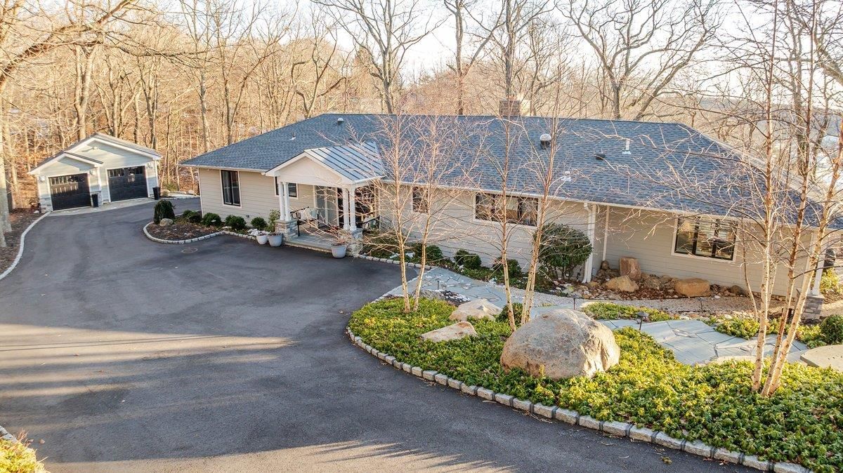 Nestled in the heart of Belle Terre, this exquisite waterfront sprawling ranch offers breathtaking views of Port Jefferson Harbor and an unparalleled blend of style and sophistication. As you step inside, soaring vaulted ceilings create an airy, open atmosphere, with a spacious living room boasting a stunning stone double-sided fireplace that flows seamlessly into the dining area. Floor-to-ceiling windows and sliding doors bathe the home in natural sunlight, enhancing its bright, welcoming ambiance and impeccable views.