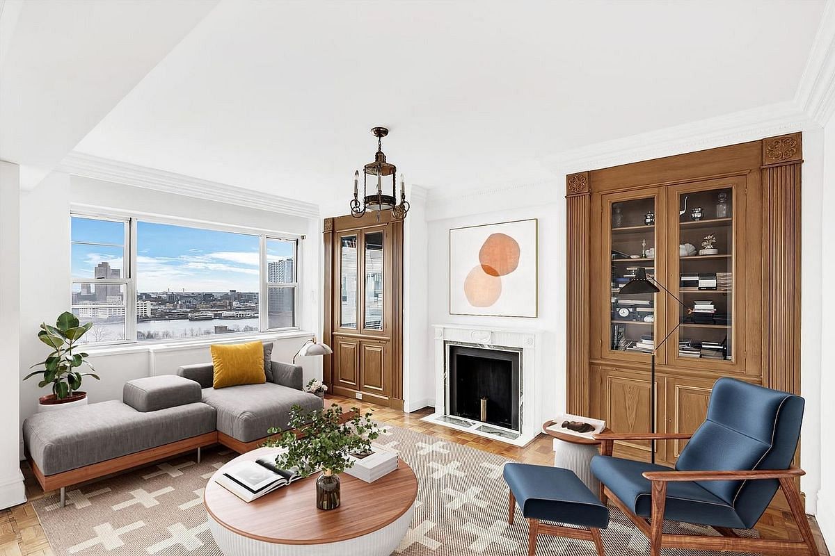 Residence 17H enjoys a large living room large enough for living and entertaining, so spacious it even fits a piano; a sprawling dining room; a tranquil bedroom; two full bathrooms; a spacious eat-in, windowed kitchen; entry foyer; ample storage and closets; and, best of all, direct views of the East River from the living room and den (previously the primary bedroom). A welcoming foyer, the option to install a washer/dryer, gleaming wood floors, moldings, and custom built ins, and new air conditioning units complete this incredible residence.