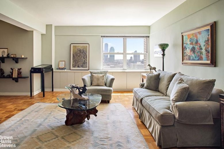 With a simple, utilitarian design, Apartment 20G is equal parts stylish and functional. This extra-large one bedroom, one and half bathroom home reflects the mid-century aesthetic of the 1950's. The clean lines, large open-plan entrance foyer, living room, and dining area create a vast entertaining space. Other icons of mid-20th century design include the original metal kitchen cabinets, built-in shelving in rich wood tones, and an emphasis on the sunlight from the East River views. This home features abundant closets, primary bedroom with ensuite bathroom, and parquet wood floors. Apartment 20G definitely the creativity and uniqueness of its owners.