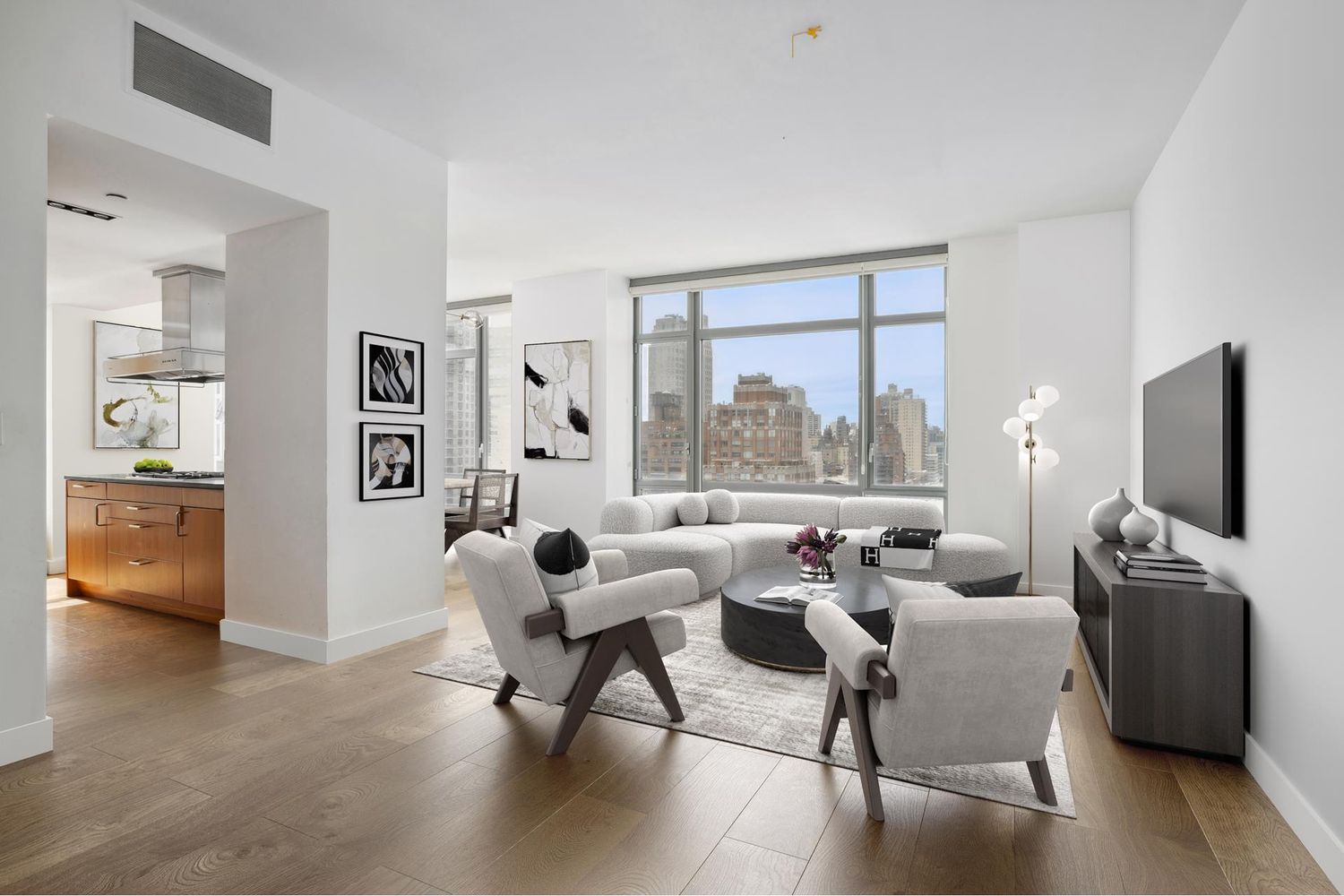 Thoughtfully designed, the residence includes ample closet space, a proper entrance foyer, in-unit laundry, central air conditioning, and built-in solar shades for ultimate convenience and style. Nestled in a fantastic, full-service building, residents enjoy an unparalleled living experience with white-glove service, a 24-hour doorman, and a dedicated concierge to cater to every need.