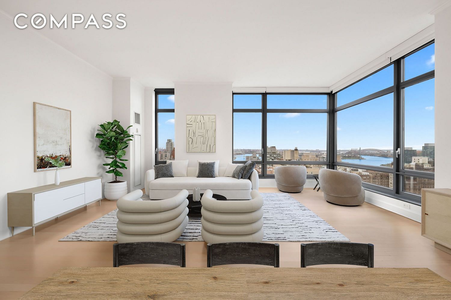 Perched on the 23rd floor of The Cielo Condominium, this expansive 1,866 square foot, sun-drenched residence delivers everything a discerning buyer desires. With dramatic 10-foot ceilings and floor-to-ceiling windows throughout, every room showcases breathtaking panoramic vistas of the East River, bridges, and city skyline from its prime northeast corner exposure.
