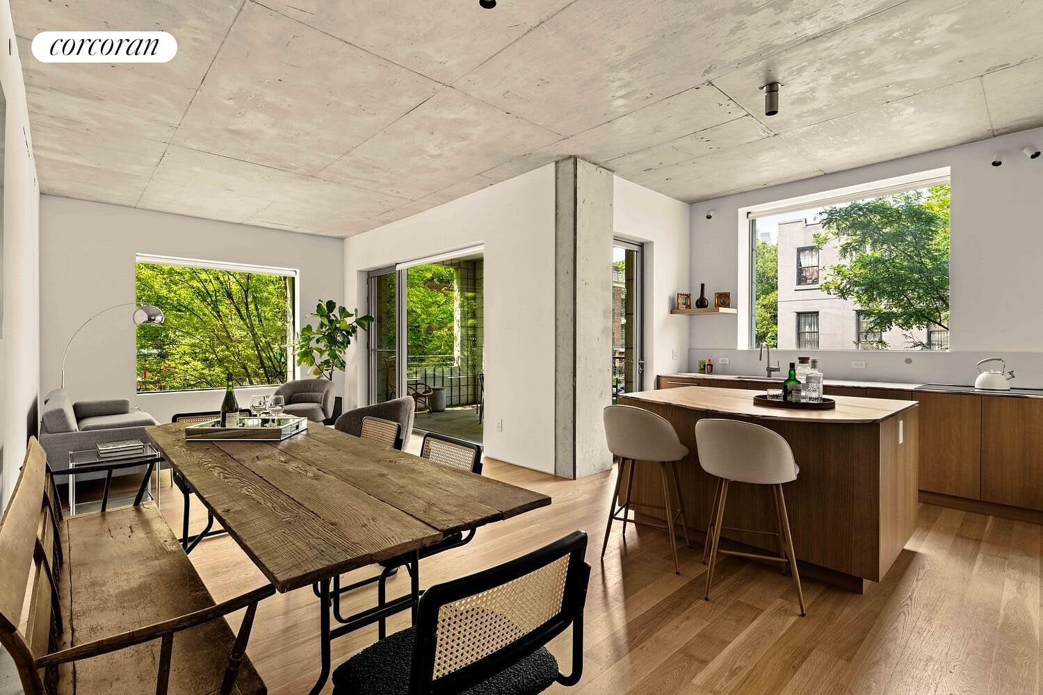 From the moment you step in, you'll know you've arrived somewhere special - a one-of-a-kind architectural marvel in the middle of Brooklyn. Entering into a lushly planted open-air atrium, this sanctuary of sunlight, air, and greenery welcomes you home. The open-air stairway, curved glass lobby, and walkways above allow natural sunlight to flow throughout. No dark cavernous hallways here - just a tranquil transition from city to home. Designed by acclaimed architects SO-IL in collaboration with Tankhouse, 450 Warren is celebrated for its revolutionary approach to residential living, transforming the simple act of coming home into an uplifting experience.