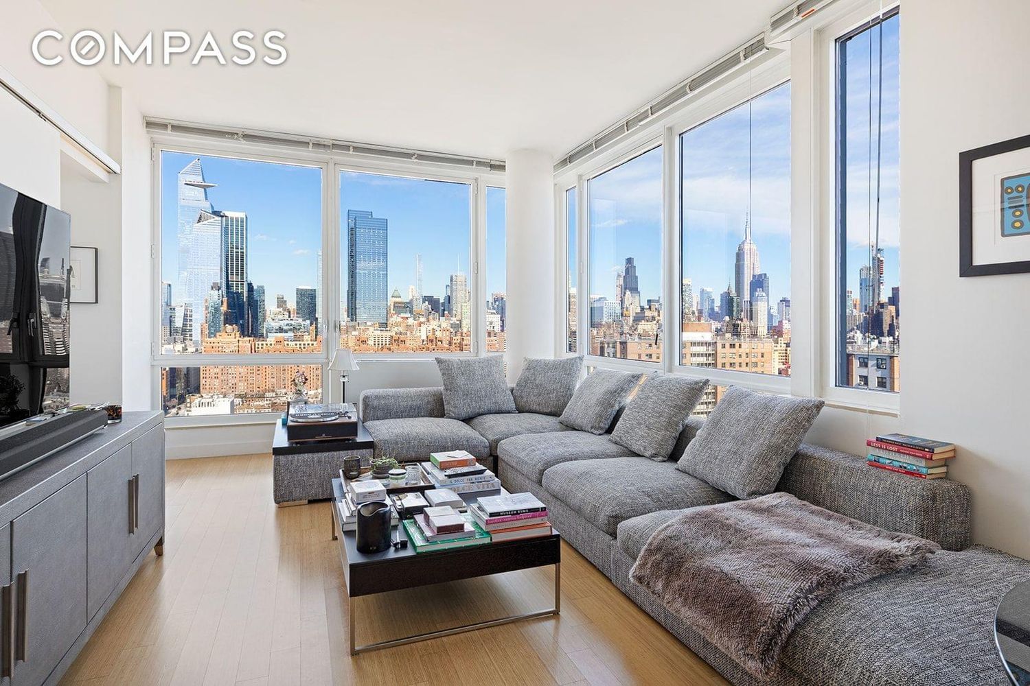 Perched atop The Caledonia in prime West Chelsea, Residence 2503 is a sun-drenched corner two-bedroom offering a seamless blend of warmth, tranquility, and elevated city living. With sweeping north and east exposures, floor-to-ceiling windows fill the home with natural light and frame stunning skyline views.