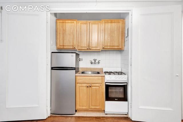 Wonderful studio with super closets and a very smart design available at Addison Hall on West 57th Street. Facing North, this quiet studio has hardwood floors and two super generous closets and a kitchenette that can be hidden behind doors when you are entertaining. Make this your own jewel box by updating the kitchen and bath, or leave the original blue and white bath for authenticity.