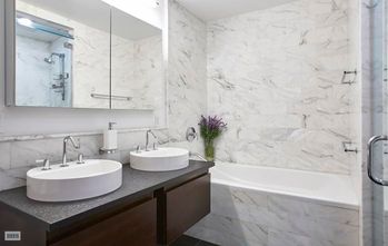 All three quiet and bright bedrooms are large and have excellent closet space. The views are lovely and enveloped by trees. The primary bedroom is oversized with 2 walk-in closets and a marble 5 fixture en-suite bath with double sinks and a separate tub and shower.