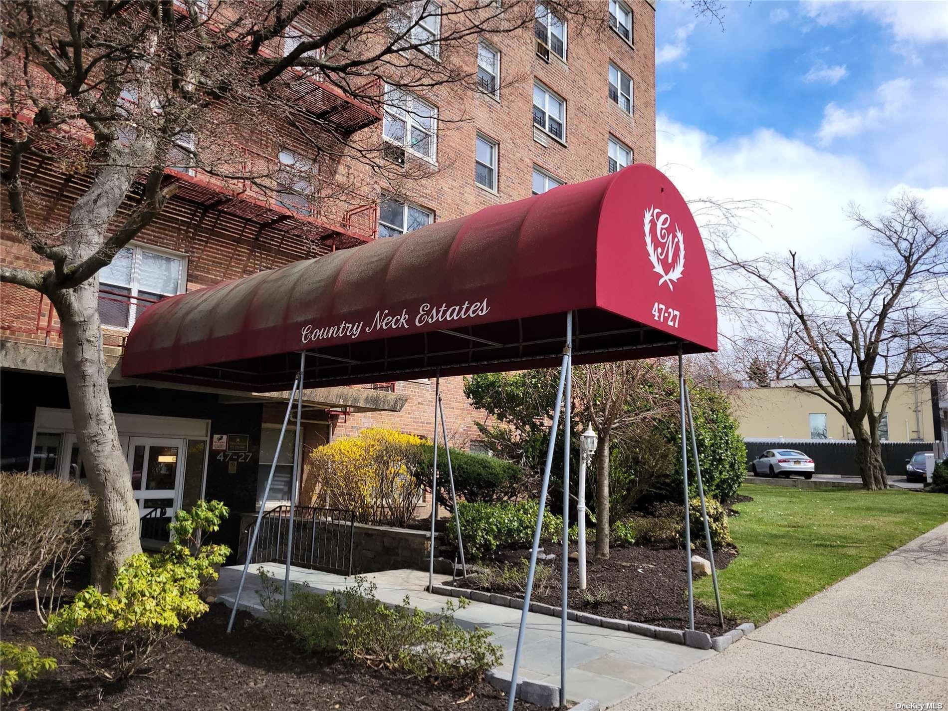 REDUCED AND READY FOR SALE Conveniently located top floor Country Neck Co-op studio apartment. THE POOL IS OPEN. New kitchen and bath. Beautiful tile work in the bathroom with glass shower doors. Five closets, two ceiling fans, and winter view of Manhattan. Just in time to enjoy, pool, tennis and outdoor patio space. There is a playground and barbeque area. Laundry room on first floor. Location is near LIRR, Northern Blvd., shopping, schools, and LIE. There is a waitlist for parking, but on street parking is usually available.