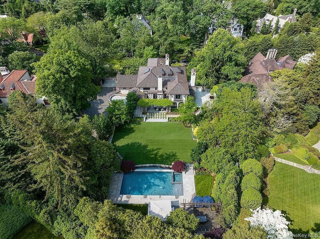 Originally designed in 1925 by renowned architect Lewis Bowman, this extraordinary residence has been meticulously reimagined by Lucio DiLeo of Studio RAI Architects and its current owners through a comprehensive, four-year, world-class renovation. Seamlessly blending timeless architectural beauty with modern luxury, this nearly 9,200 SF masterpiece is defined by exquisite design, fine craftsmanship, and resort-style amenities. Set back along a private drive, the home's stately facade gives way to a world of refined elegance. Stone steps wind toward an enchanting terrace and a glass-enclosed loggia, opening into interiors that are nothing short of breathtaking. A dramatic, balconied foyer overlooks a grand living room featuring a 14-foot soaring beamed ceiling, striking Palladian windows, and an imported 7x6-foot limestone fireplace, setting the tone for the extraordinary quality found throughout the home. The formal dining room, wrapped in silk-lined walls and centered around a second fireplace, is both luxurious and welcoming—ideal for elegant entertaining or intimate gatherings. Every inch of this residence reflects a deep commitment to artisanal detail and exceptional materials. At the heart of the home is a chef's dream kitchen—bright and expansive, with a stunning barrel-arched ceiling and views of the rear gardens. A 12-foot island with a champagne sink, natural quartz countertops, and top-of-the-line appliances—including a La Cornue Grand Palais 180 range, La Cornue Flamberge rotisserie, Blue Star electric oven with pizza stone, Miele fridge and freezer, steam and speed oven, and separate coffee station—creates the ultimate culinary experience. A custom Vaclav brass and pewter hood, custom cabinetry by Nils Kasperson, a large pantry with an ice maker, a kitchen office, and a fully outfitted mudroom add both beauty and function. Flowing seamlessly from the kitchen, the spectacular Great Room is the home's showpiece—anchored by a dramatic stone fireplace and enhanced by custom wood beams, a full built-in entertainment wet bar, bespoke built-in shelving, an 82-inch hidden drop-down TV, and state-of-the-art AV. Adjacent is a light-filled breakfast/dining room surrounded by Palladian windows that open to a private terrace with its own fireplace—perfect for al fresco dining and quiet evenings. Upstairs, five luxurious bedroom suites (easily convertible to six) each offer en-suite baths with steam showers, walk-in closets, AV systems, and custom built-ins. The primary suite is a serene retreat featuring a cathedral ceiling, private balcony, soundproof linen walls, a hidden 65-inch TV, and a lavish spa bath with radiant-heated floors, gas fireplace, soaking tub, and steam shower. Included in the 9,200 SF is 3,000 SF of upper- and lower-level, fully permitted space with infrastructure in place to build out a myriad of amenities such as a home gym, golf simulator, game room, home office, wine room, and more. The estate's outdoor spaces are equally impressive, replete with endless stone walls and bluestone patios throughout. Designed for entertaining on a grand scale, the grounds feature a 42-foot heated pool and spa, a 70x60 sports court, multiple Lynx grill stations, expansive dining and lounge terraces, koi ponds, a secret garden with a swing, two cozy fireplace terraces, and ample space for a massive party tent. A fully automated Savant/Lutron lighting, AV control, and surveillance system ensures comfort and security in this private paradise. Completing the estate is a temperature-controlled, customized two-car garage with 11-foot ceilings outfitted for two auto lifts to accommodate two SUVs and two sports vehicles, plus additional driveway parking for eight vehicles—providing a total of 12 parking spaces. Set in a quiet, exclusive enclave just minutes from Bronxville village and a quick commute to Manhattan—all in a community celebrated for its top-rated schools and exceptional quality of life.