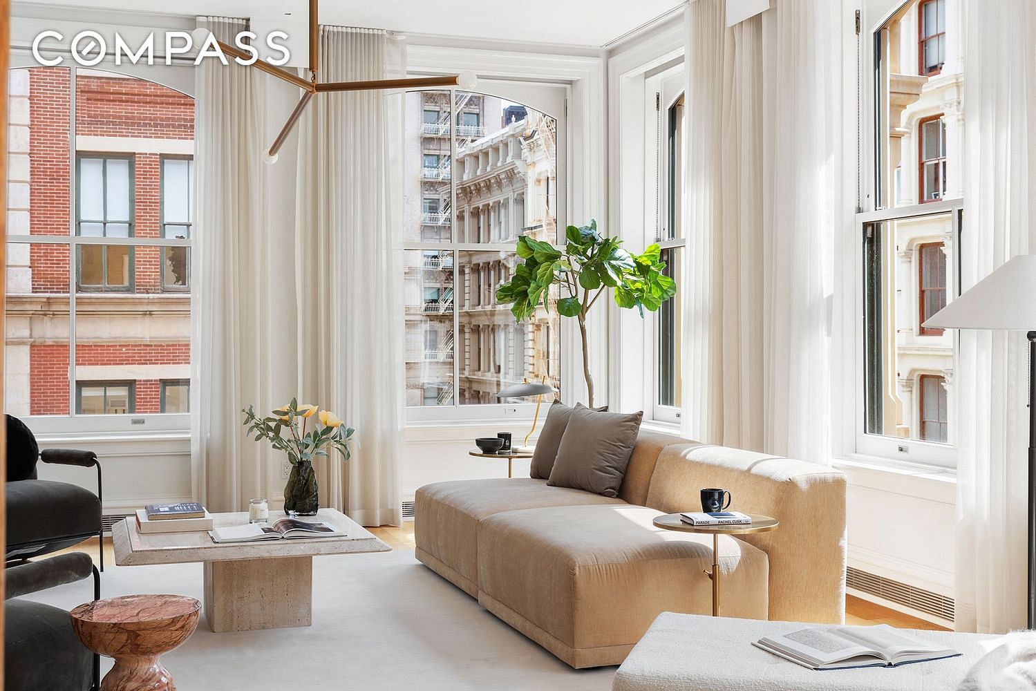 This expansive Soho Corner Loft Condo, located in an Iconic Cast-iron Landmark, celebrates Light with 11 dramatic South and East facing windows overlooking historic Greene and Broome Streets. Only 3 residential units in the Condo.