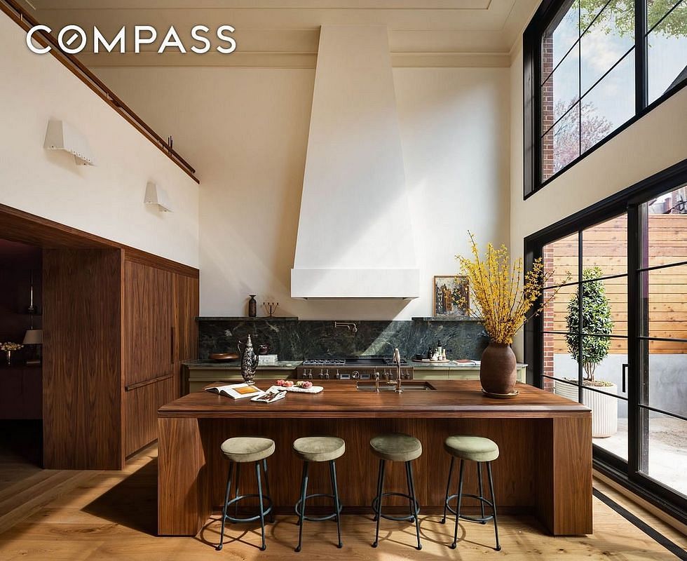 The parlor level is centered around entertaining, with generous ceiling heights and a natural flow between living and dining. Below, the kitchen opens directly to the private garden, creating a more informal setting for the quiet rituals of daily life.
