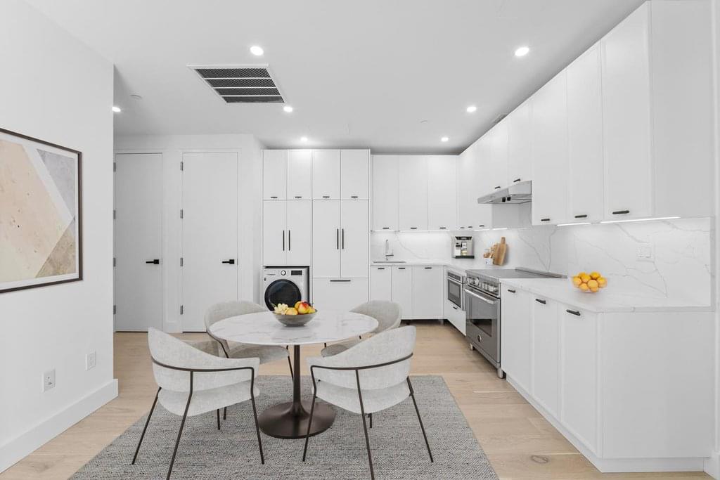 All residences feature high (10 foot) ceilings, solid white oak floors throughout and black framed oversize windows. Ranging from 415 to 1,332 square feet, these smartly conceived layouts have been precisely crafted with the most in-demand finishes. The sleek industrial-chic styling is ready for you to make your own. Thoughtfully designed kitchens integrate premium Fisher & Paykel refrigerators, Bertazzoni ranges and microwave drawers, and Bosch dishwashers, with Calcutta Divine countertops. Polished yet practical, your kitchen is ideally suited to preparing that culinary masterpiece or simply brewing up some morning java. Bathrooms are nicely outfitted with 124 subway bathroom tile, grid graph flooring in a dark slate gray palette, completed with best-in-class Kohler fixtures, sink and toilet. Every unit includes a washer-dryer hookup. Select apartments are enhanced by outdoor spaces; enjoy a first floor garden area or private rooftop terrace with barbecue grill.