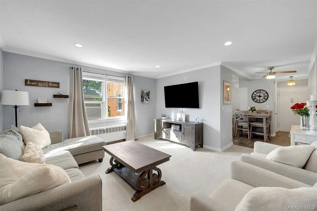 Welcome home to this spacious and stylish 2-bedroom, 1-bath unit in the heart of White Plains! This first-floor residence offers a welcoming entry foyer with a large closet that opens into a sun-filled living room featuring brand-new carpeting. The updated kitchen is outfitted with modern appliances and plenty of counter space, making it the perfect spot for cooking, entertaining, or simply enjoying your morning coffee. Both bedrooms are generously sized, and the full bath showcases a timeless, clean design. Nestled within the sought after Bryant Gardens community, residents enjoy beautifully landscaped grounds set across 22 acres, complete with two playgrounds, a community garden, BBQ/picnic areas, an outdoor fitness zone, and park benches throughout. The community also takes pride in creating a warm, welcoming atmosphere with seasonal touches. Each building offers its own laundry room in the basement, with additional storage units available for a monthly fee. Ample free parking and garage parking (via waitlist) add to the convenience.