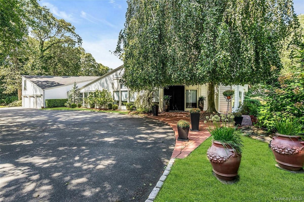 Elegance redefined in this stunning gem that blends an eclectic mix of mid-century modern design with a touch of contemporary sophistication, nestled on two lush, gated acres in Upper Brookville. From the moment you enter, the home captivates your imagination with its soaring 30-foot ceilings and dramatic windows and wood architectural elements. Clean lines, warm textures, and artful finishes create a sanctuary where luxury and tranquility meet.