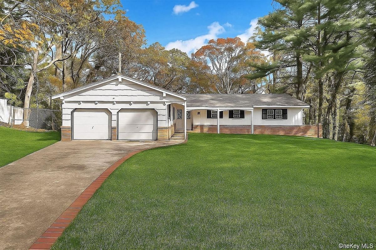 Discover this timeless ranch-style home nestled on a private 1.36-acre lot in the heart of Dix Hills. Offering over 4,000 sq. ft. of interior space, this expansive 4-bedroom, 4-bath residence provides endless potential to customize and create your dream home.The interior features a spacious and versatile layout with a large living room, formal dining area, and multiple fireplaces. The primary suite includes an en-suite bath, complemented by three additional bedrooms and generous closet space throughout.Outdoors, the serene property offers limitless possibilities for entertaining, relaxation, or designing your own backyard oasis. Surrounded by mature trees on a quiet street, this home delivers both privacy and convenience, close to top-rated schools, parks, and major roadways.Don't miss this rare and exceptional opportunity to reimagine a classic home in one of Long Island's most sought-after communities — perfect as a forever home or a valuable investment.Front photo is for depictional purposes only and may not represent current conditions.