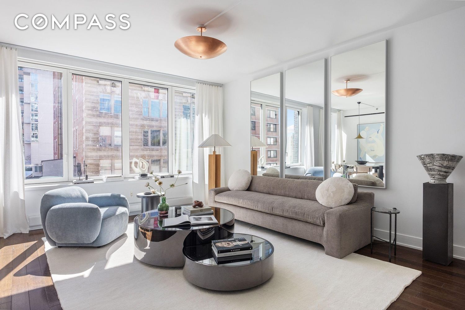 This two-bedroom plus den/media room and three full bathroom residence is a haven in one of Tribecas premier full-service luxury buildings. The east-facing layout bathes the home in natural light, while soaring 9.5' ceilings and custom 5-inch wood flooring enhance the elegance and warmth of the space.