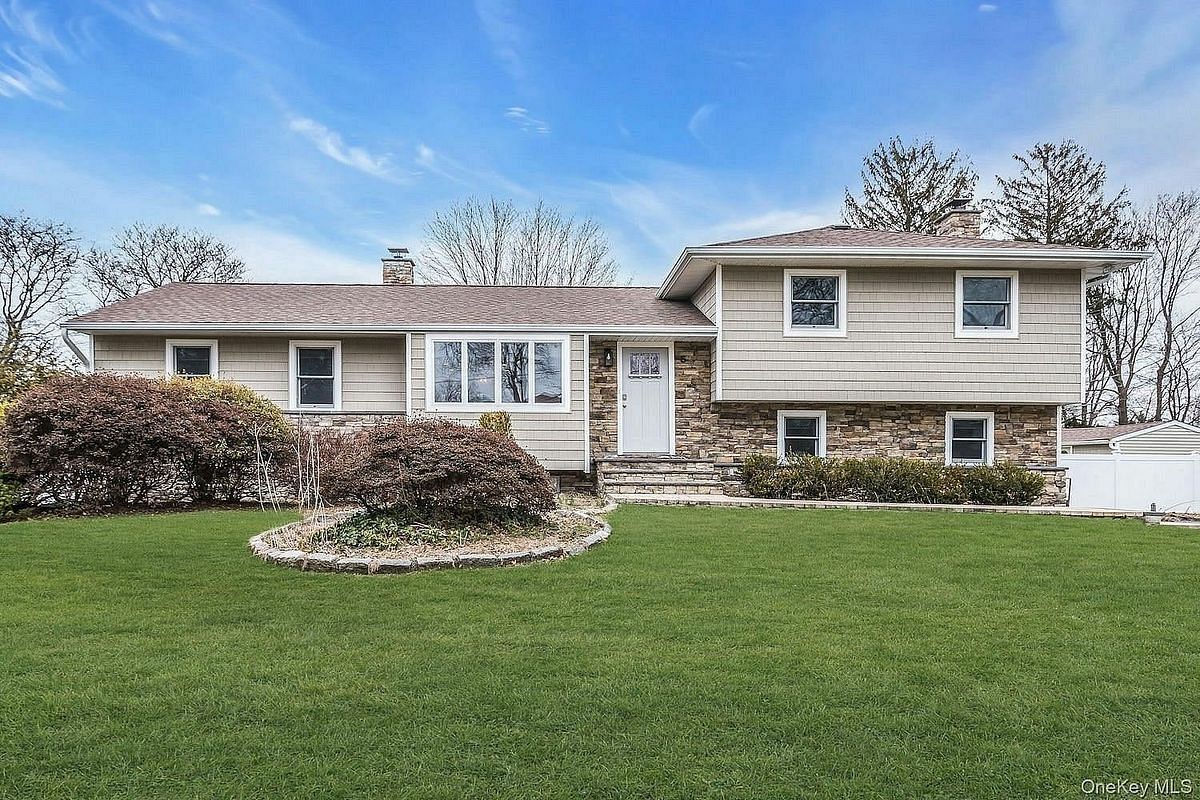 Updated and expanded 4 bedroom 3.5 bath split in Commack SD. Half acre of flat property with rear patio and built in fire pit. Updates include: 2019-2020 den and fireplace remodel, primary bathroom with steam shower, vinyl fence, all bathrooms remodeled. 2021-2022 - new roof, siding, windows, gutters, stonework chimneys, outdoor lighting, outdoor bar, brick walkways, fire pit, CAC, stainless steel kitchen appliances, washer and dryer in basement and primary bedroom. Exterior hi hat and flood lighting