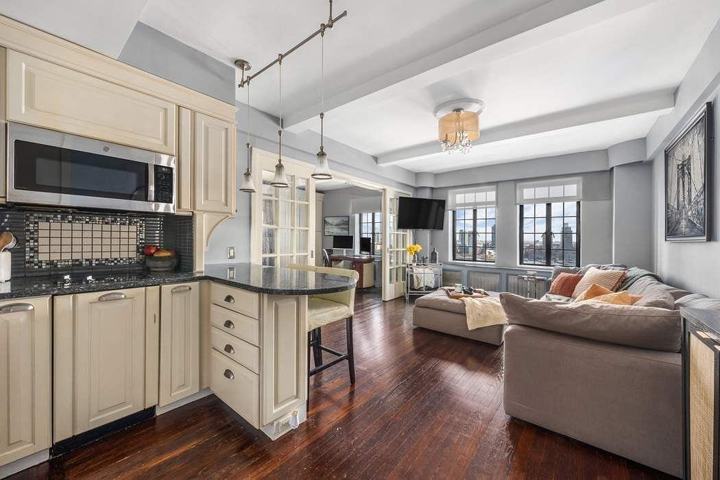 - Living Room: Sunny and light filled space with classic windows showcasing gorgeous East River views. The room features sliding French glass doors that enhance the light and sight lines and lead to the oversized bedroom.