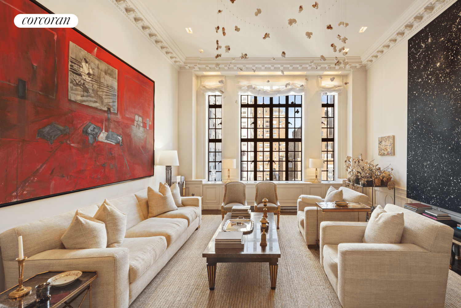 One of the much sought-after grand "double height " living room apartments at the Carlyle House is now available. These apartments are coveted by private art collectors and those enjoying an exceptional quality of living. This apartment has been meticulously renovated with no expense spared and provides the ultimate grand entertaining spaces and commodious private quarters. It is accessed by a private elevator landing which opens to a wide 25" long foyer spanning the length of the entertaining rooms: a show-stopping living room with a 13 foot ceiling, a serene and spacious library, and a marvelous formal dining room. The primary suite has two stylish marble baths and a separate dressing room. The guest room is down the hall and very large with two exposures and a lovely bath. The sizable kitchen is well equipped with top of the line appliances, a designated laundry room and has a staff room and bath, all accessed by a second service entrance. The Carlyle House offers a high level of luxury services as it enjoys private access to the Carlyle Hotel and The Caf Carlyle, Dowling's, Bemelmans's Bar, The Gallery, Valmont Spa, Gym, Yves Durif Hair Salon, Parking Garage and even Room Service! The building is beautifully managed and enjoys a surprisingly low monthly carrying cost.