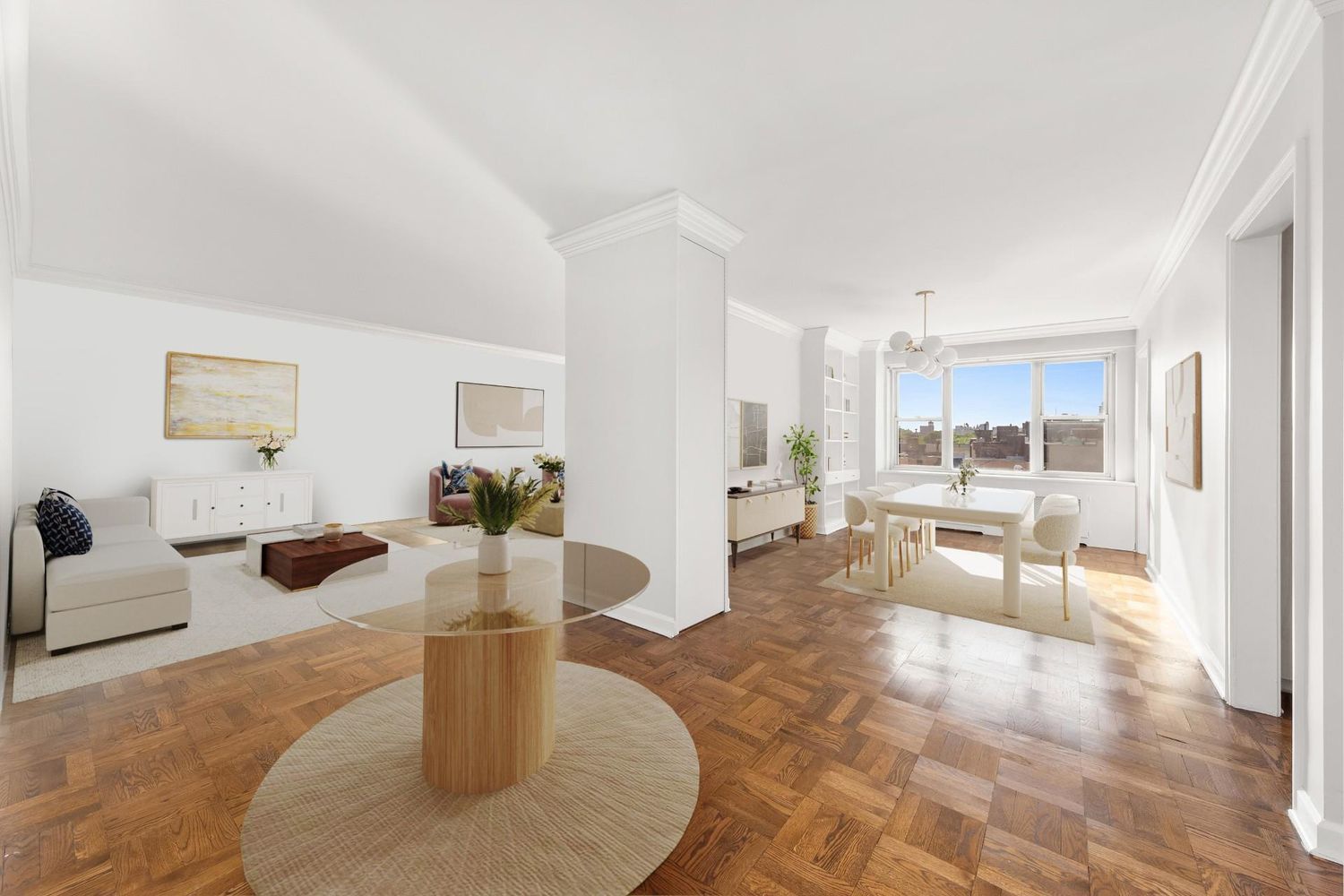 Enjoy sunshine and sunsets from every window, with landmarked views of the tree tops of Central Park, across to the Upper West Side and the iconic towers of the San Remo and Beresford. Currently used as a one bedroom, this gracious home is easily convertible to two bedrooms. The common areas have a natural flow for entertaining. The living room, with picture windows, and foyer are enormous and can easily house a dining area. The separate dining room can be used for dining, a den, home office, or converted to a spacious second bedroom.
