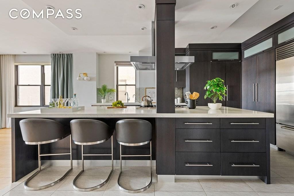 The windowed kitchen renovation is sublime. High end appliances including a 6 burner Wolf range, Sub-Zero oversized refrigerator/freezer, Miele dishwasher, Jenn-Air under counter microwave, granite counters all incorporated into a huge center island. Every cabinet is well designed with ample interior storage and featuring a large pull out dry goods pantry. Also, there is a full sized stack Frigidaire washer and dryer conveniently installed behind some kitchen cabinets. This unit had a licensed storage cage that will transfer with the unit.