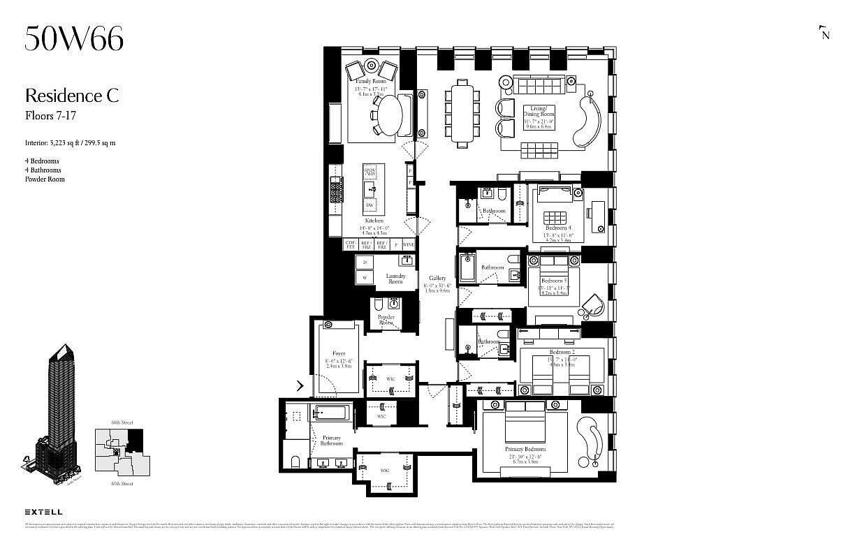 50 West 66th Street, slated to be one of the tallest and most important residential buildings that will transform the Upper West Side and the New York City Skyline. Extell's newest tower will have 127 ultra-luxury homes ranging from two bedrooms to full floors. The building boasts 50,000 square feet of amenity space including both an indoor and outdoor pool, squash court, full sized basketball and pickleball court, state of the art fitness center, Sky Lounge for entertaining and Porte cochere entrance. House residence 8C is a gracious 3,223 square foot, 4-bedroom 4.5 bath home. This North/East facing apartment can be shown by private appointment.