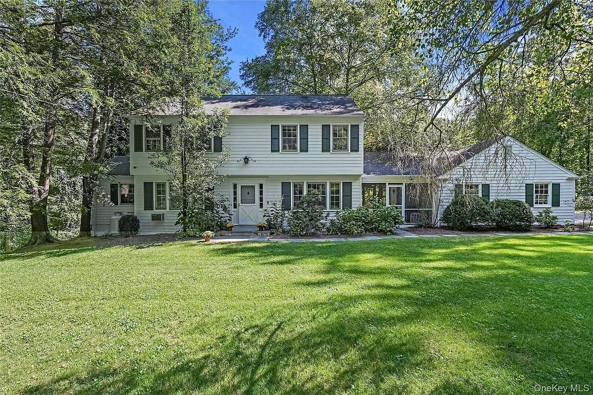 This classic center hall colonial set on 3 plus acres with a gunite pool in the Bedford Central school district has superb curb appeal & charm. Perfectly positioned away from the road behind mature trees, this home offers sensational privacy. This gracious 3500 sq ft (inclusive of the 700 sq ft finished walk out lower level) home lives like a four bedroom. A welcoming foyer leads you to the living room with a wood burning fireplace and large windows allowing for incredible sunlight to flow. The expansive formal dining room is adjacent to the kitchen. The second level boasts a primary bedroom with en suite bathroom, full hall bathroom and two bedrooms. .Hardwood floors flow throughout (except in the kitchen) and thoughtful features such as a main-level office, a spectacular three season enclosed porch, one step entry from the 2 car garage to the house, and a whole-house generator provide both convenience and comfort. The layout is ideal for everyday living and the property offers plenty of room for outdoor play and entertainment. A freshly painted exterior, newer mechanicals and a newly stained deck overlooking the property. Located just 4 miles to the Mt Kisco train station, shopping, and dining and 2 miles to the Saw Mill. This home with an outdoor oasis has an unbeatable location whether this is your full time home or weekend retreat away from the city. Bring your vision - the possibilities for renovation and redesign of this home are limitless!